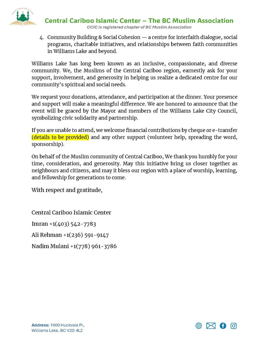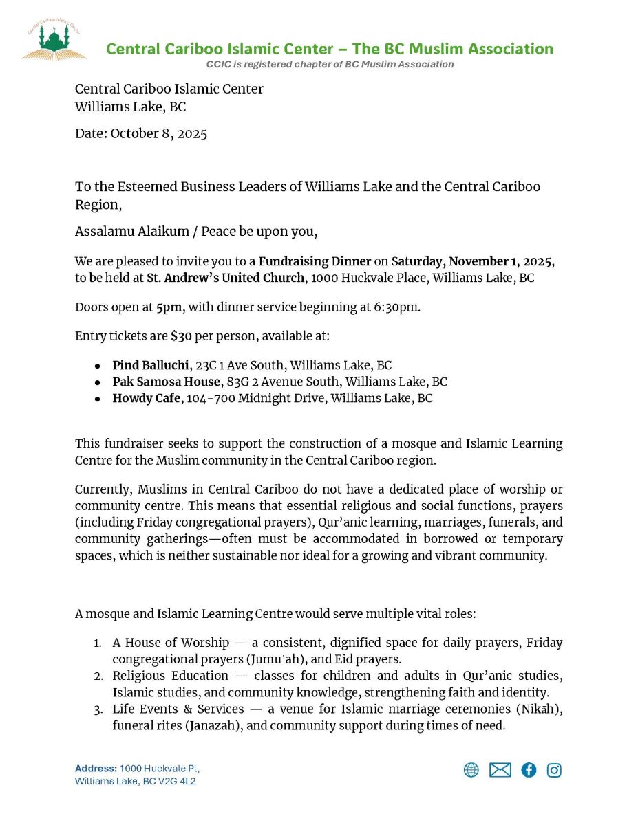 BCMA Central Cariboo Islamic Center - Fundraiser